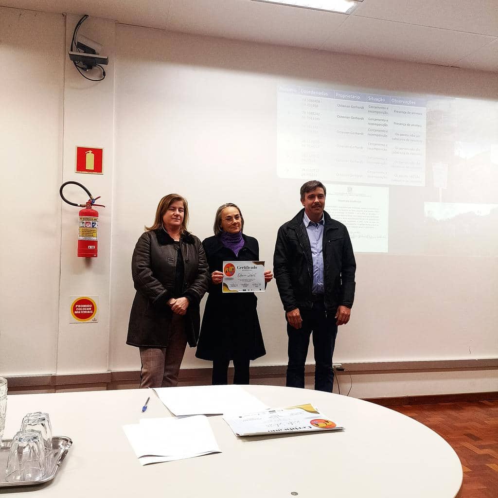 Durante o encontro, que aconteceu no campus da Universidade Federal Fronteira Sul, foram entregues certificados de participação aos proprietários das áreas onde estão localizadas as nascentes que são alvo do projeto.