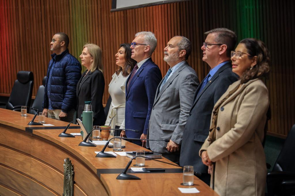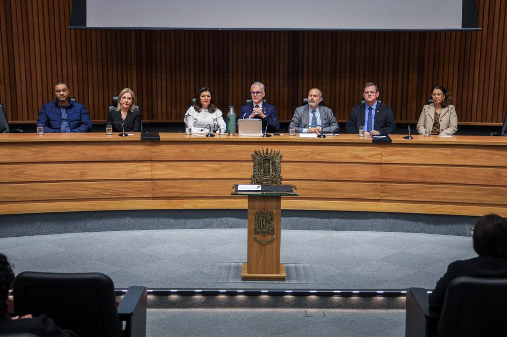 Também compuseram a mesa de abertura a subprocuradora-geral de Justiça para Assuntos Institucionais, Isabel Guarise Barrios; o secretário-geral do MPRS, João Ricardo Santos Tavares; o diretor do CEAF, Sérgio Harris; a procuradora de Justiça Maria Cristina Moreira de Oliveira, representando a AMPRS; e os presidentes do SIMPE, Jodar Prates, e da APROJUS, Carmem Pasquali.