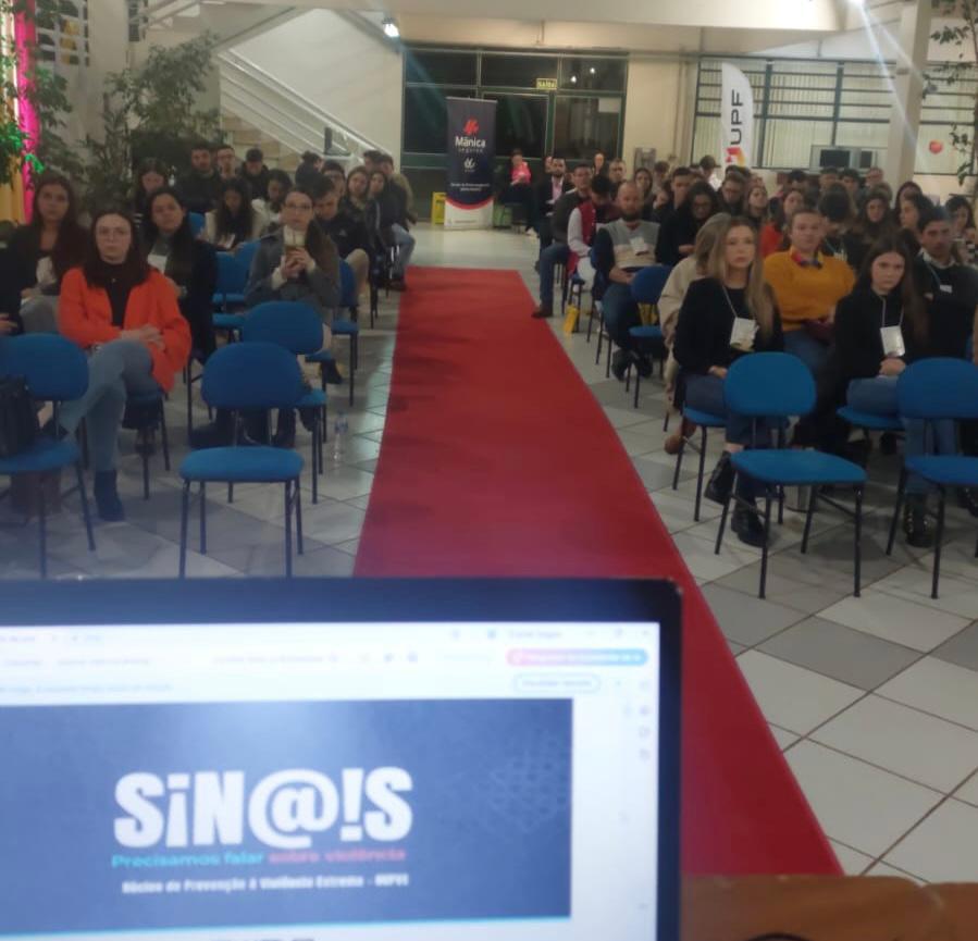 Na terça-feira, dia 7, durante a XVIII Semana Acadêmica do Campus da Universidade de Passo Fundo (UPF) em Carazinho, a assessora do NUPVE, Michele Prado, apresentou o Projeto Sinais a estudantes e profissionais da educação. Já no dia 8, em Erebango, o promotor de Justiça Rodrigo Piton, da Promotoria de Passo Fundo, conduziu a apresentação do Projeto Eu Enxergo os Sinais a pais de alunos das escolas do município, abordando os riscos da exposição digital e a importância da conscientização das famílias.