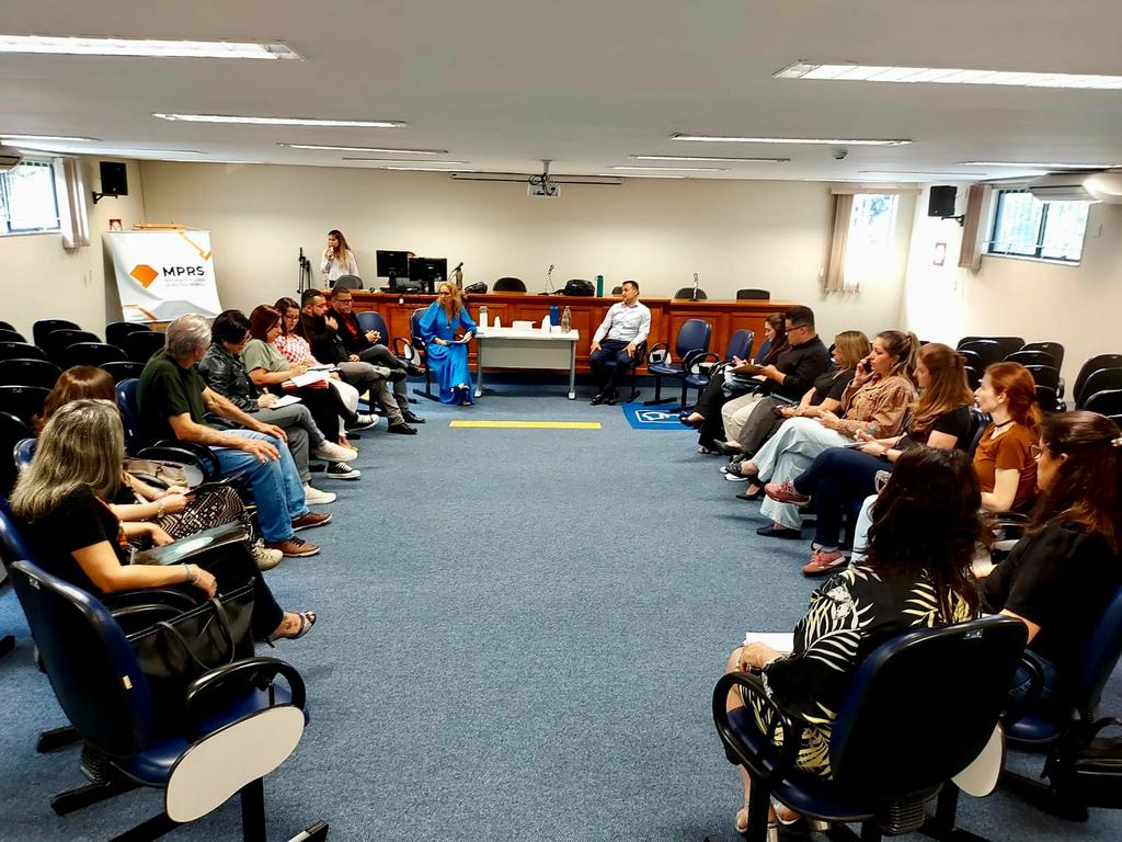 O procurador de Justiça Fábio Costa Pereira e o promotor Leonardo Rossi conduziram a exposição do projeto, que tem como foco a capacitação de profissionais da educação, famílias, agentes públicos e membros da rede de proteção para a identificação precoce de sinais e comportamentos que possam indicar risco de episódios extremos de violência envolvendo crianças e adolescentes.