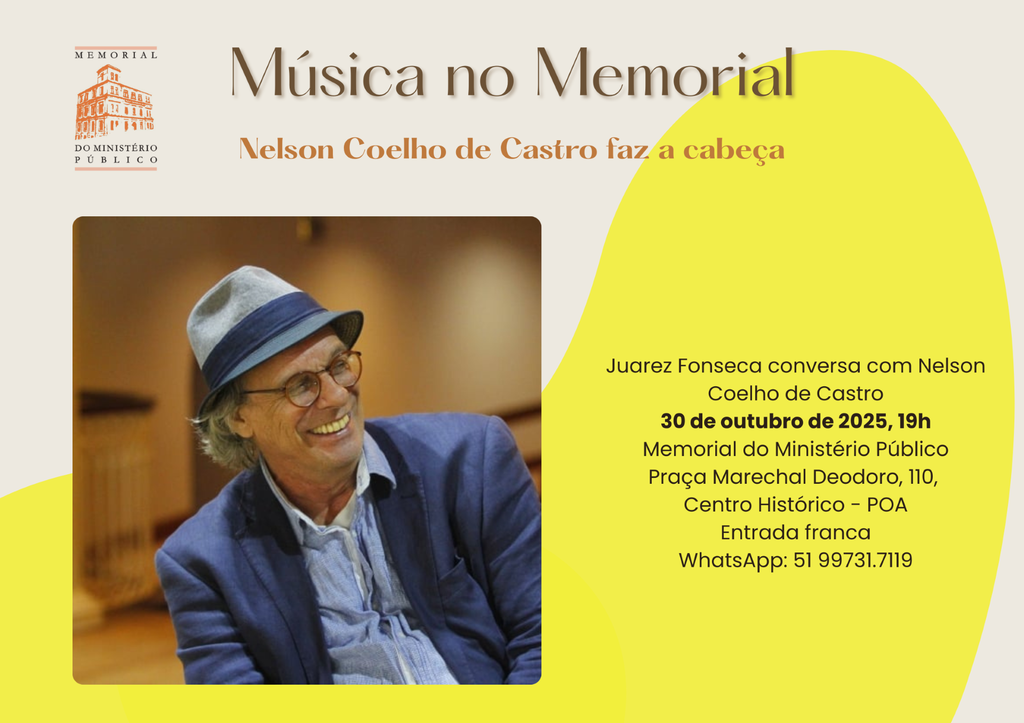 Nesta quinta-feira, 30 de outubro, às 19h, o Memorial do Ministério Público do Rio Grande do Sul (MPRS), na Praça Marechal Deodoro, 110 , em Porto Alegre, será palco da 11ª edição do projeto Música no Memorial, recebendo o cantor, compositor e produtor musical Nelson Coelho de Castro.