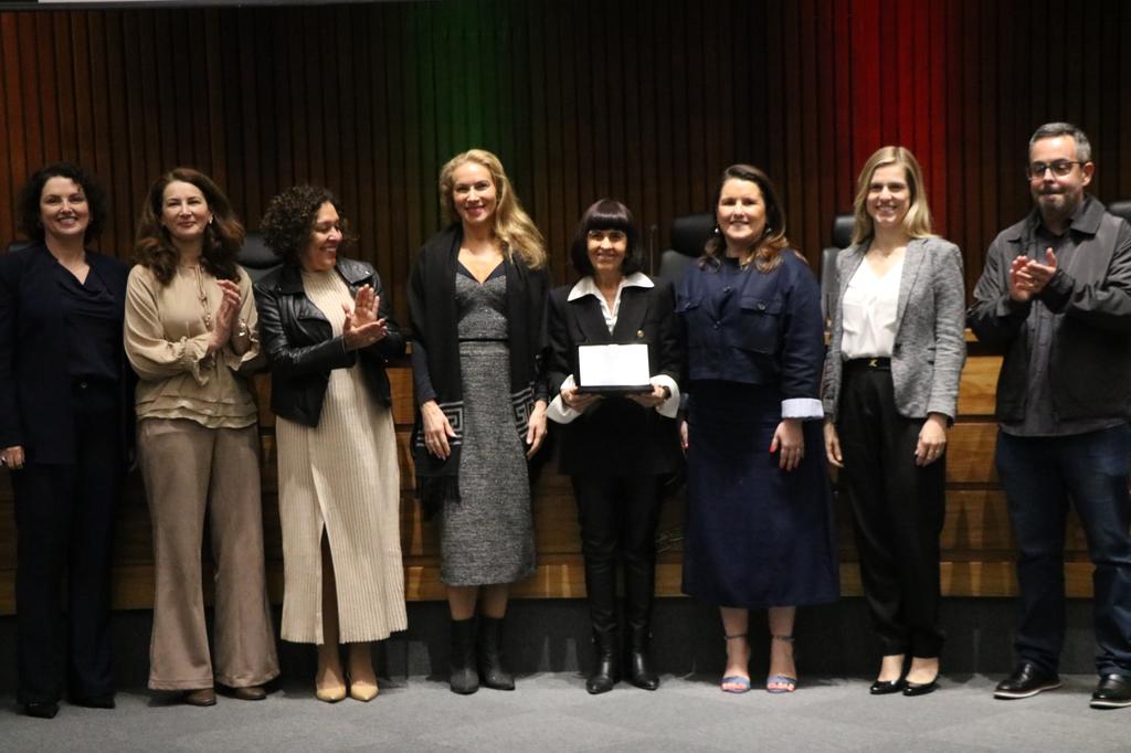 Durante o Seminário Busca Ativa Escolar, realizado pelo Ministério Público do Rio Grande do Sul (MPRS), a procuradora de Justiça Maria Regina Fay de Azambuja foi homenageada por sua trajetória de quase quatro décadas dedicadas à defesa dos direitos de crianças e adolescentes.