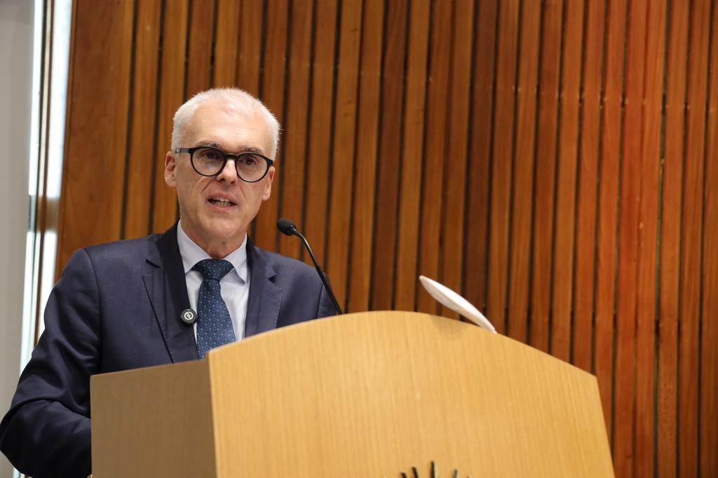Em sua fala, o procurador-geral de Justiça, Alexandre Saltz, ressaltou que os servidores do MPRS “são os pilares que sustentam a atuação da instituição, dedicando os melhores anos de suas vidas à causa da justiça e à efetivação de direitos”. O PGJ reconheceu o trabalho essencial para que a engrenagem institucional funcione com excelência e finalizou agradecendo pela lealdade, técnica e dedicação de todos: "o reconhecimento prestado é uma justa homenagem às trajetórias construídas, que permitem que a instituição cumpra sua missão."