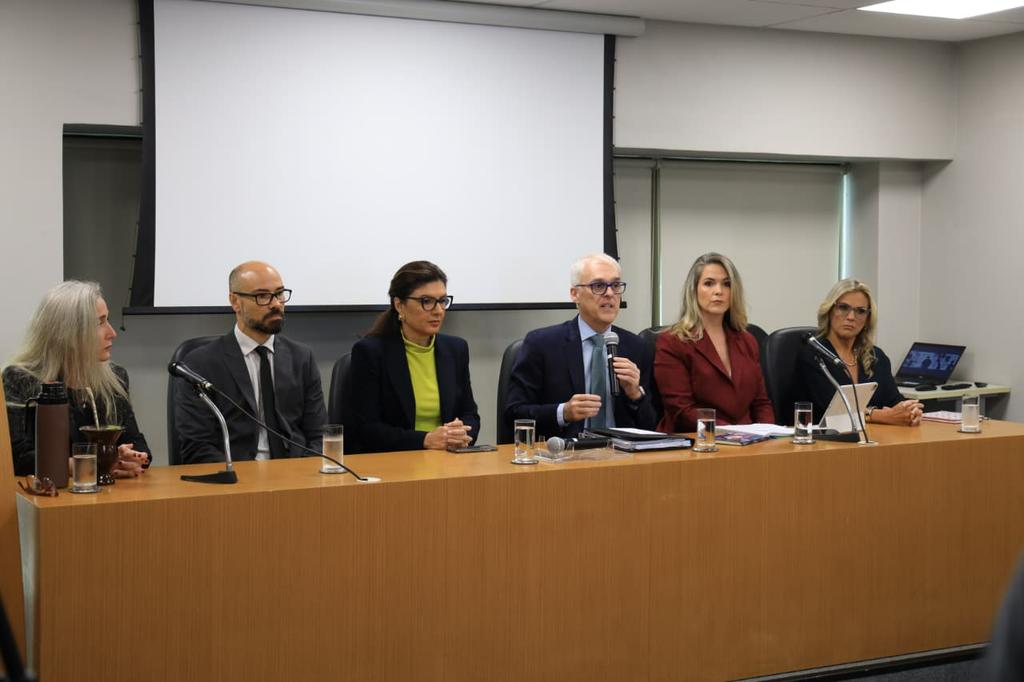 Estiveram presentes o procurador-geral de Justiça, Alexandre Saltz; a subprocuradora-geral de Justiça para Assuntos Institucionais, Isabel Guarise Barrios; os coordenadores do Centro de Apoio Operacional do Júri, Marcelo Tubino, e Criminal e de Acolhimento às Vítimas, Alessandra Moura Bastian da Cunha; além das promotoras de Justiça responsáveis pela denúncia apresentada ao Poder Judiciário: Luciana Casarotto, titular da ação; e Luciane Wingert, designada para atuar no caso por já ter acompanhado processo anterior envolvendo o investigado.