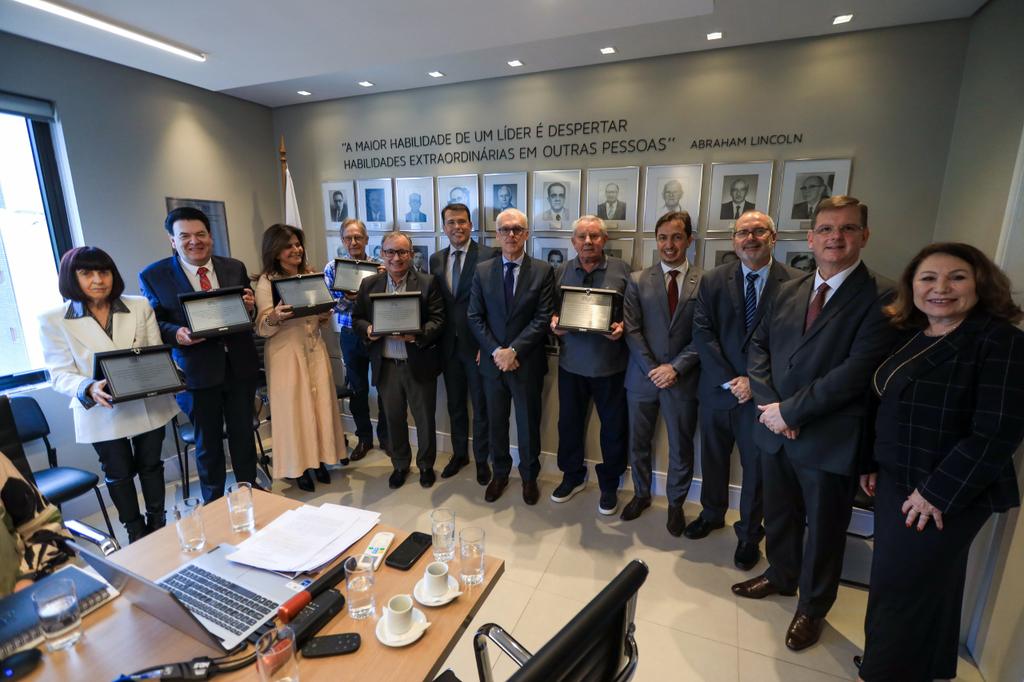 Na sequência, foram entregues placas de homenagem aos integrantes que se aposentaram em 2025: Glênio Amaro Biffignandi, Luiz Carlos Ziomkowski, Luiz Henrique B. Lima Faria Corrêa, Luiz Inácio Vigil Neto, Maria Regina Fay de Azambuja, Rosele Maria Luchese, Ruben Giugno Abruzzi, Sérgio Guimarães Britto e Sônia Madalena Silveira Bonilla.