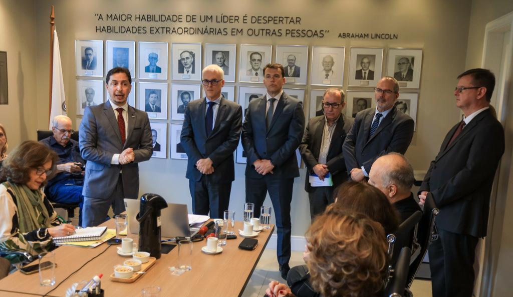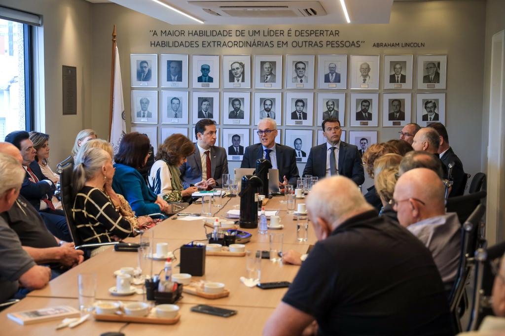 O procurador-geral de Justiça, Alexandre Saltz, prestigiou na manhã desta quarta-feira, 5 de novembro, a cerimônia de entrega das carteiras funcionais para membros jubilados do Ministério Público do Rio Grande do Sul. Na cerimônia, que teve também a presença do subprocurador-geral para Assuntos Administrativos, Heriberto Roos Maciel, e do secretário-geral do MPRS, João Ricardo Santos Tavares, houve também uma homenagem aos jubilados em 2025, com a entrega de uma placa que celebra a trajetória do grupo na instituição.
