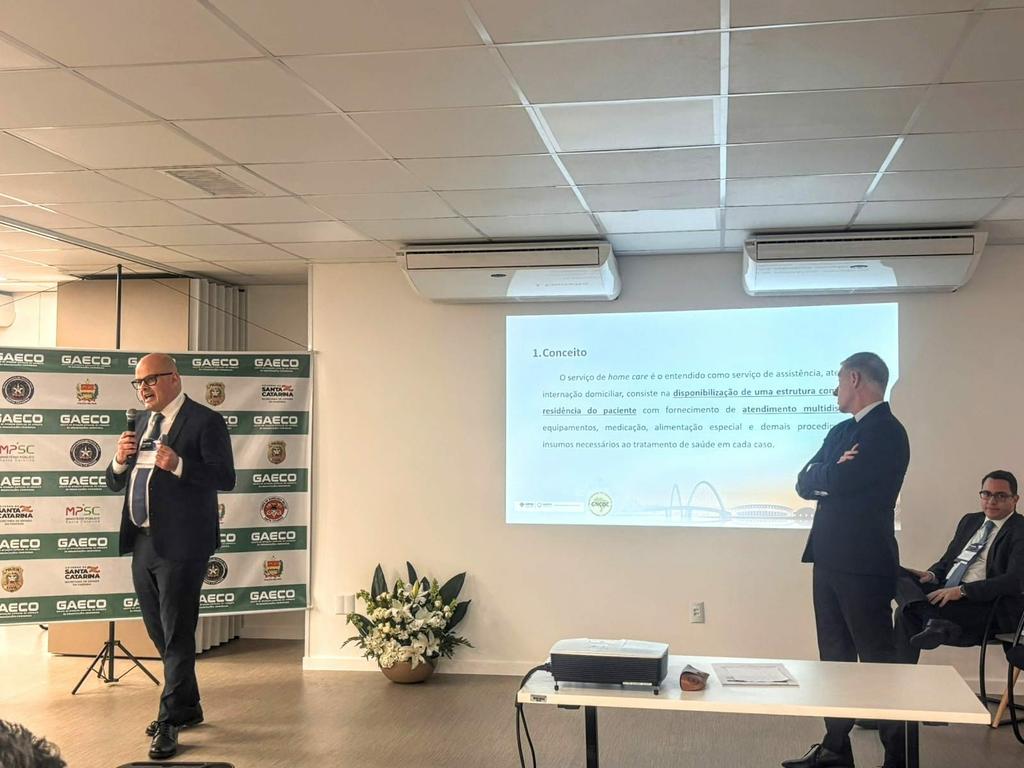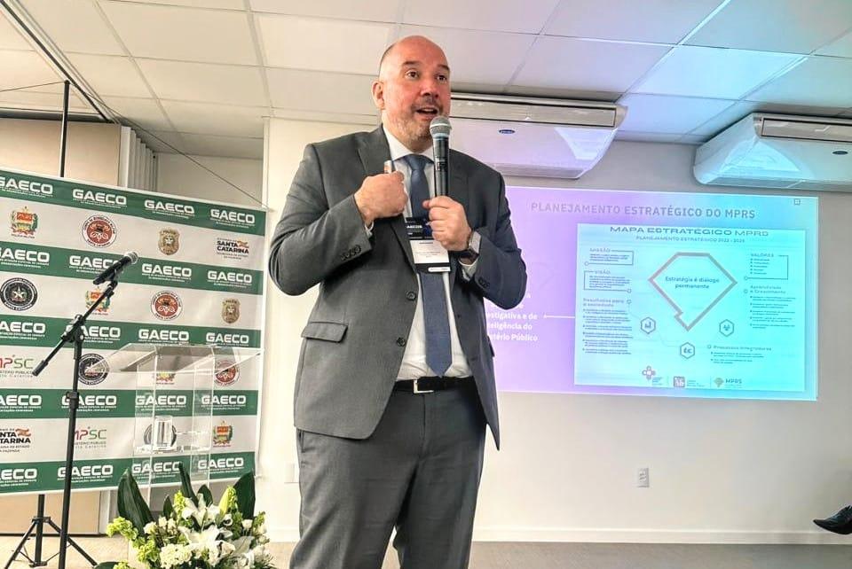 O Grupo de Atuação Especial de Combate ao Crime Organizado do Ministério Público do Rio Grande do Sul (GAECO/MPRS) participou nesta quinta-feira, 6 de novembro, em Florianópolis, do 1º Seminário dos Ministérios Públicos Estaduais da Região Sul. O evento reuniu procuradores de Justiça, promotores, servidores e policiais adidos aos MPs do RS, Santa Catarina e Paraná. O objetivo foi fortalecer a atuação conjunta no enfrentamento às organizações criminosas dos três Estados.