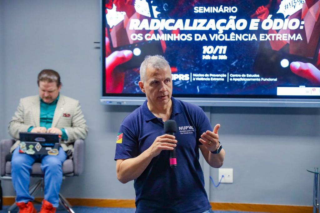 O Ministério Público do Rio Grande do Sul (MPRS), por meio do Núcleo de Prevenção à Violência Extrema (NUPVE) e do Centro de Estudos e Aperfeiçoamento Funcional (CEAF), promoveu nesta segunda-feira, 10 de novembro, em Porto Alegre, o seminário Radicalização e Ódio: Os Caminhos da Violência Extrema. O evento debateu as formas de violência extrema e como elas se desenvolvem, especialmente a partir do ambiente virtual, dos discursos de ódio e dos processos de radicalização.
