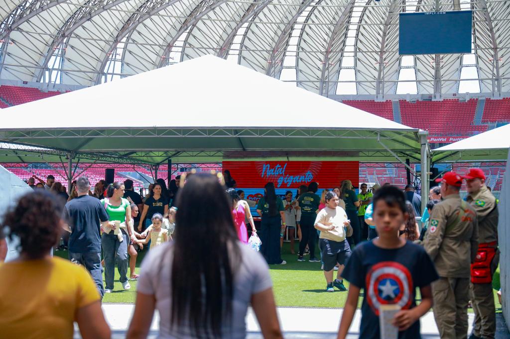 A energia das crianças marcou mais uma edição da tradicional Festa de Natal dos Acolhidos – o Natal Gigante, realizada pelo Ministério Público do Rio Grande do Sul (MPRS), em parceria com Sport Club Internacional e Estádio Beira-Rio.