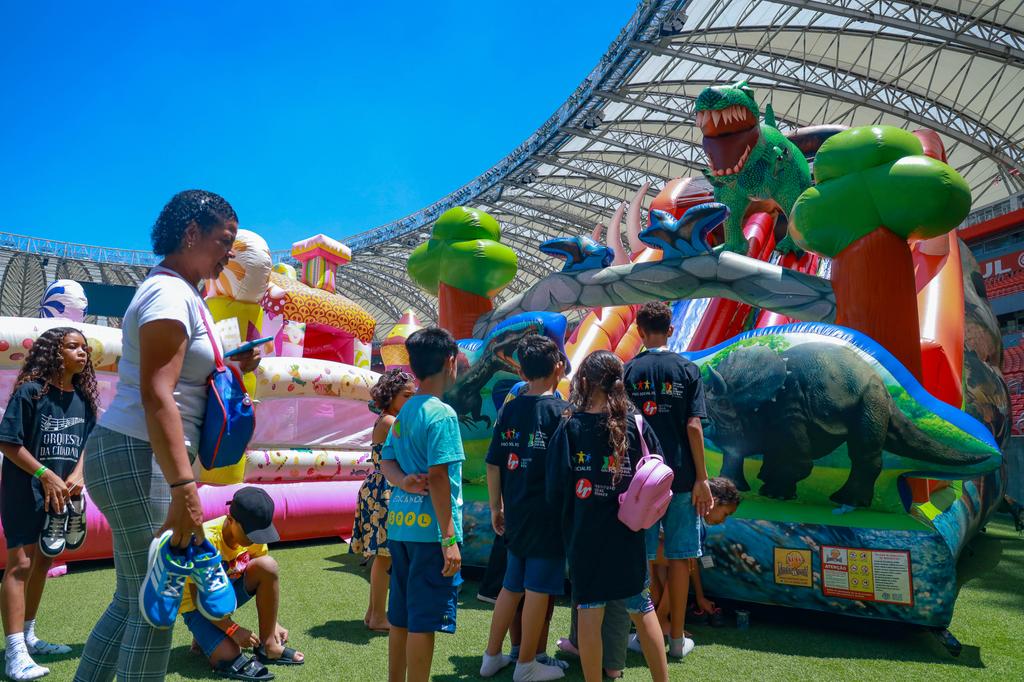 A alegria tomou conta do Estádio Beira-Rio na tarde desta quarta-feira, 3 de dezembro. Centenas de crianças correram de um brinquedo para o outro como se estivessem em um grande parque de diversões.