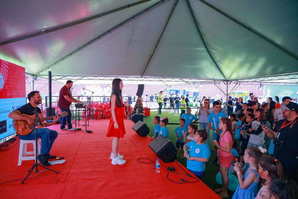Shows de VOXPLAY, Jalhesa e Banda, Valentina, Samba Tri e Serginho Moah animaram o público, preparando o clima para o momento mais aguardado: a chegada do Papai Noel, que emocionou crianças e adolescentes. Logo após, teve início a distribuição dos presentes, resultado da campanha de adoção de um total de 1.227 cartinhas com pedidos escritos pelos próprios acolhidos.