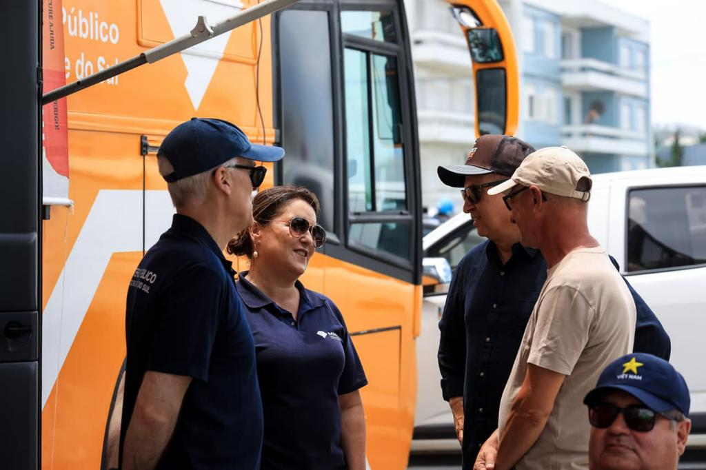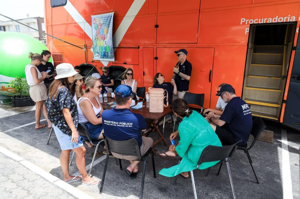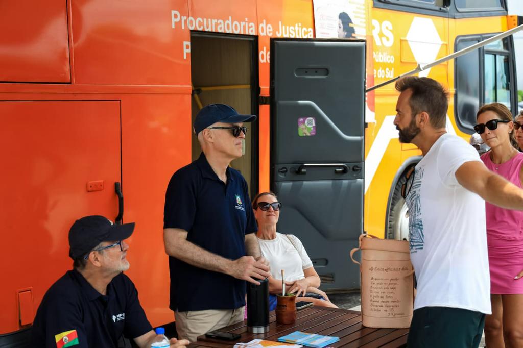 Participaram do evento a subprocuradora-geral de Justiça para Assuntos Institucionais, Isabel Guarise Barrios; o secretário-geral do MPRS, João Ricardo Santos Tavares; a coordenadora do Gabinete de Estudos Climáticos, Silvia Cappelli; os coordenadores dos Centros de Apoio Operacional do Meio Ambiente, Ana Maria Moreira Marchesan; da Educação, Infância e Juventude, Cristiane Corrales; de Enfrentamento à Violência contra a Mulher, Ivana Battaglin; e de Defesa do Consumidor, André Marchesan; as promotoras de Justiça Ana Carolina Azambuja , Fernanda Weiand, da Administração Superior, e Bianca Kosciuk, que atua em Capão da Canoa, além dos servidores do MPRS em Capão da Canoa Victor Nunes Dutra e Cláudia Andreia Cavinato, que fizeram os atendimentos no ônibus, juntamente com os promotores e procuradores de Justiça.