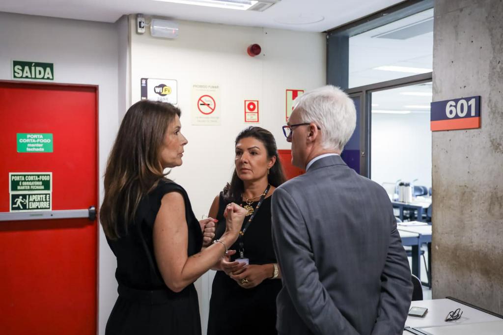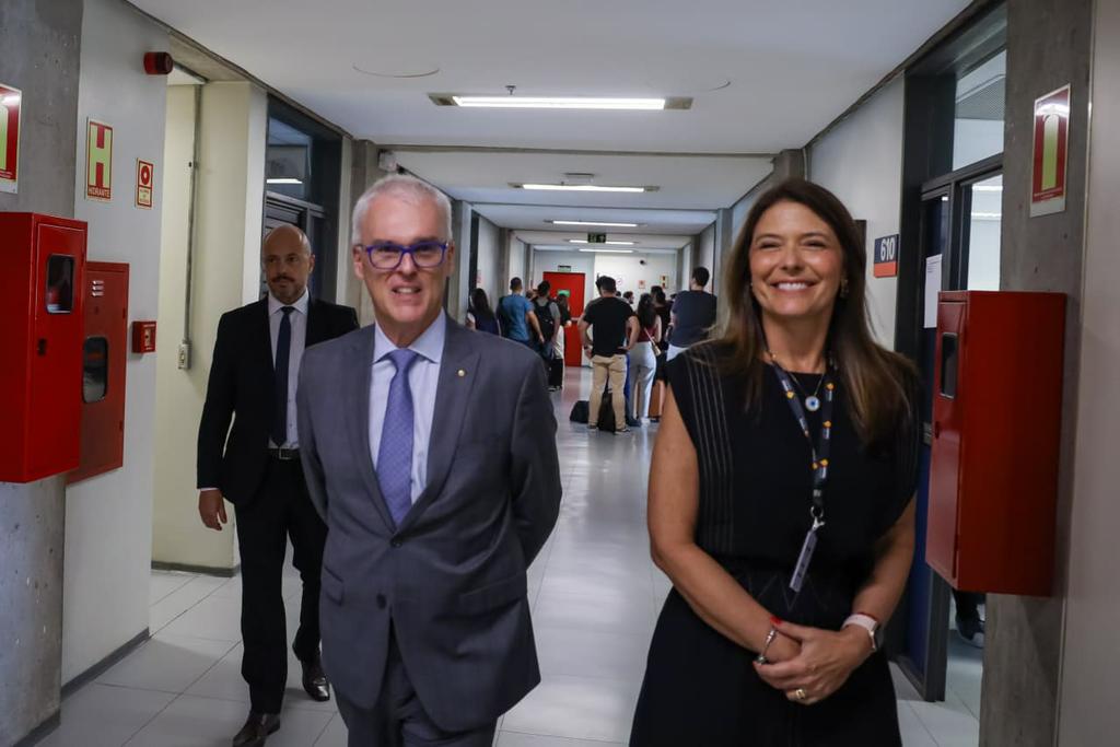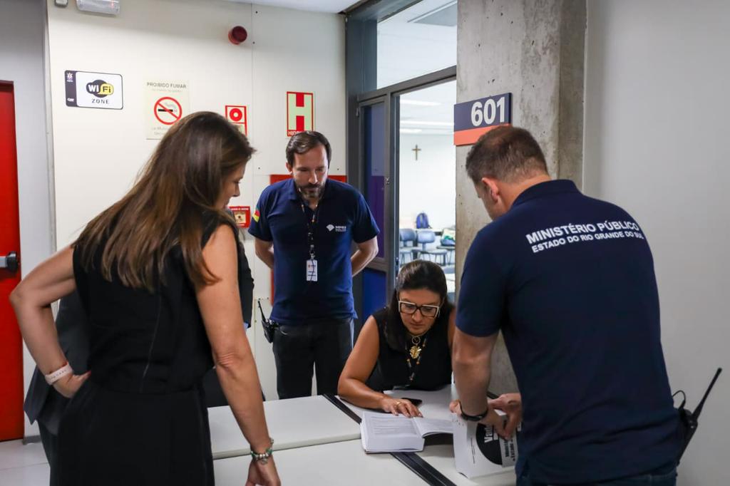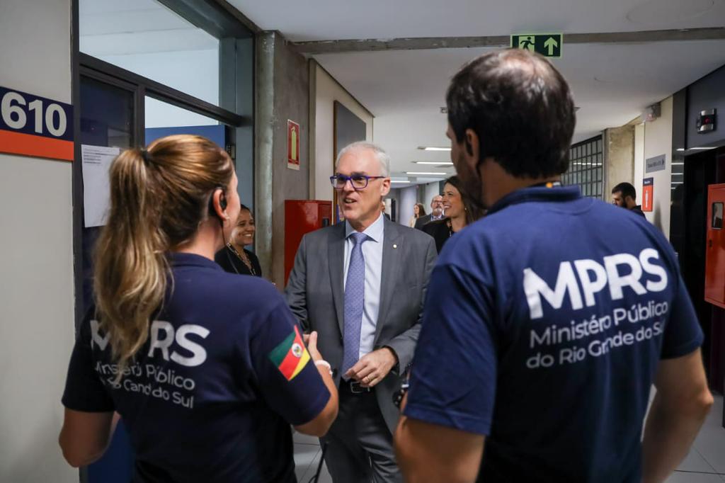 O procurador-geral, acompanhado dos subprocuradores-gerais Josiane Camejo e Heriberto Roos Maciel, passou pelas salas onde os candidatos aguardavam para realizar a prova, conversando com fiscais e integrantes da Comissão Executiva do Concurso.