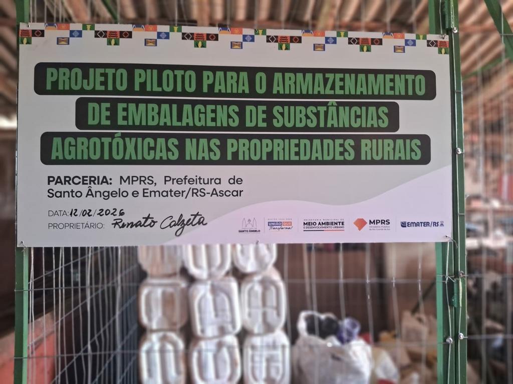 Iniciado em junho de 2024, o projeto foi proposto pela Promotoria de Justiça Ambiental Regional da Bacia Hidrográfica do Rio Ijuí e contou com a parceria da Prefeitura Municipal de Santo Ângelo, da Emater/RS-Ascar e do próprio produtor rural. O objetivo é ampliar o rol de medidas que assegurem o correto uso, manuseio e destinação de agrotóxicos, promovendo maior segurança ambiental e jurídica nas atividades agrícolas.