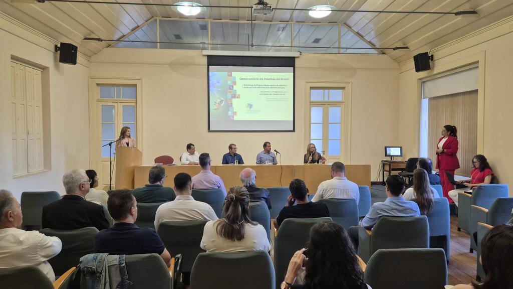 O Ministério Público do Rio Grande do Sul (MPRS) sediou, nesta sexta-feira, 27 de fevereiro, o Workshop do Projeto Observatório de Abelhas do Brasil com foco no RS – Resultados e Perspectivas para a Proteção das Abelhas do Estado do Rio Grande do Sul. O encontro, ocorrido no Auditório do Palácio do Ministério Público, em Porto Alegre, reuniu pesquisadores, integrantes de órgãos públicos e representantes do setor produtivo para debater avanços, desafios e estratégias voltadas à proteção das abelhas no Estado.