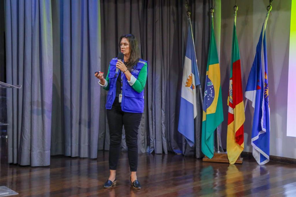 No segundo painel, mediado por Sílvia Cappelli, que tratou dos aspectos institucionais, sociais e culturais dos Planos de Contingência, participaram a promotora de Justiça Ximena Cardozo Ferreira, o coronel da Defesa Civil Estadual Márcio André Facin, o auditor do TCE-RS Matheus Kuskoski e Adriane Ferreira Nunes, da OIM – ONU Migração.