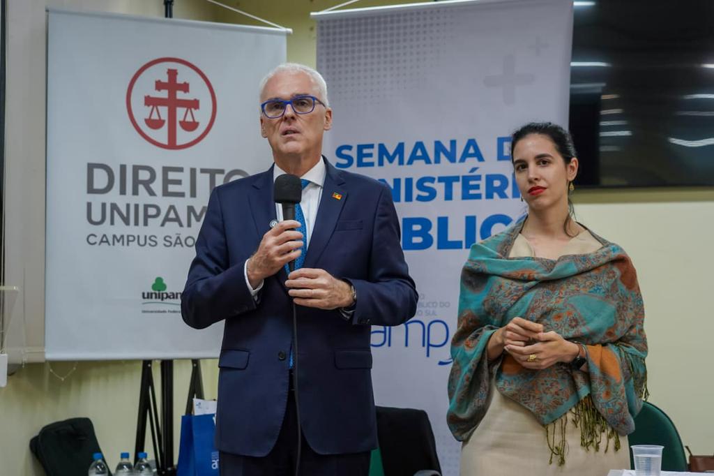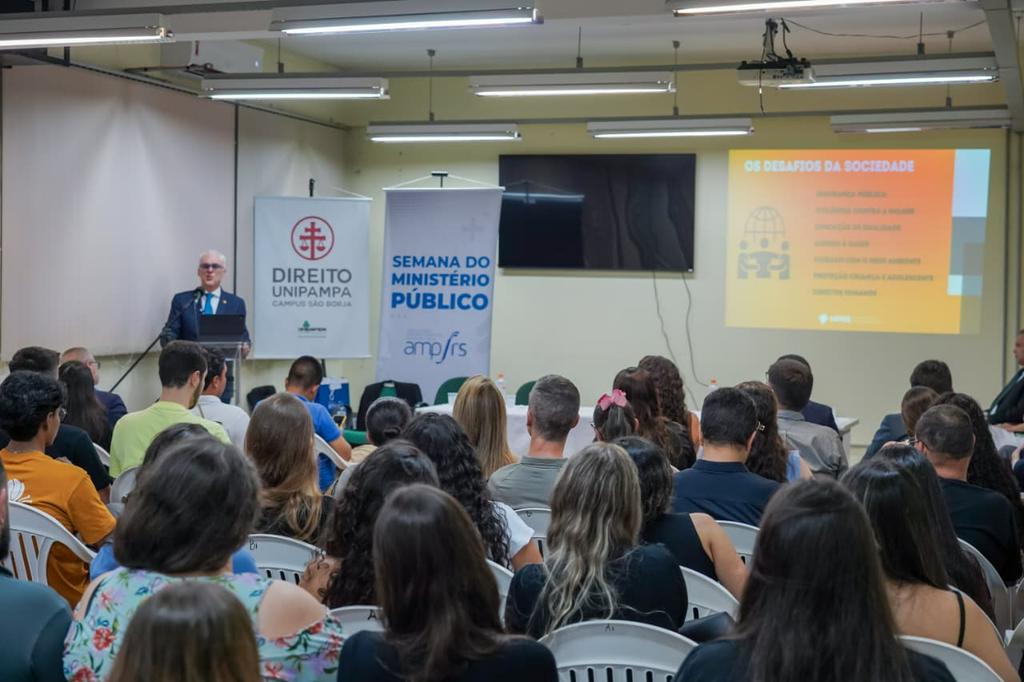 O procurador-geral de Justiça, Alexandre Saltz, abriu nesta terça-feira, 17 de março, a 4ª edição da Semana do Ministério Público em São Borja. O evento, promovido pela Associação do Ministério Público do Rio Grande do Sul (AMP/RS), ocorre no campus da Universidade Federal do Pampa (Unipampa) e coloca em pauta o tema “Os desafios do Ministério Público na sociedade atual”.