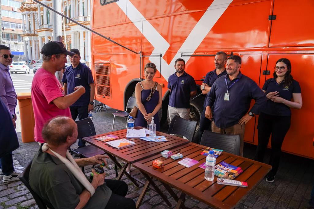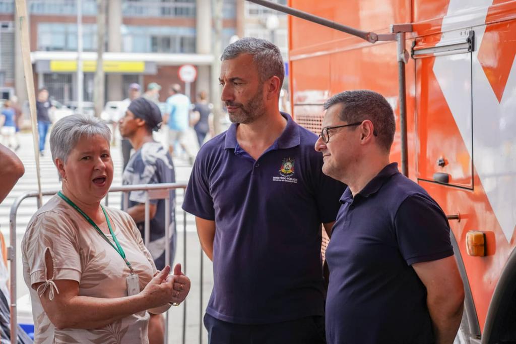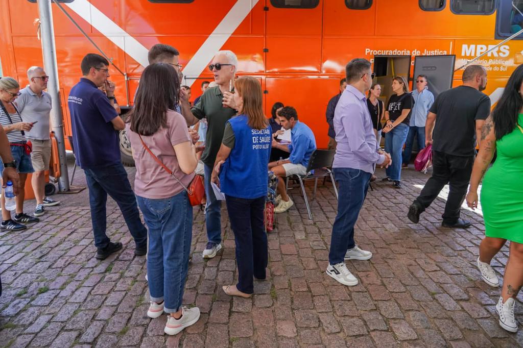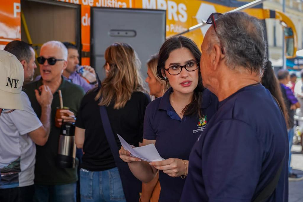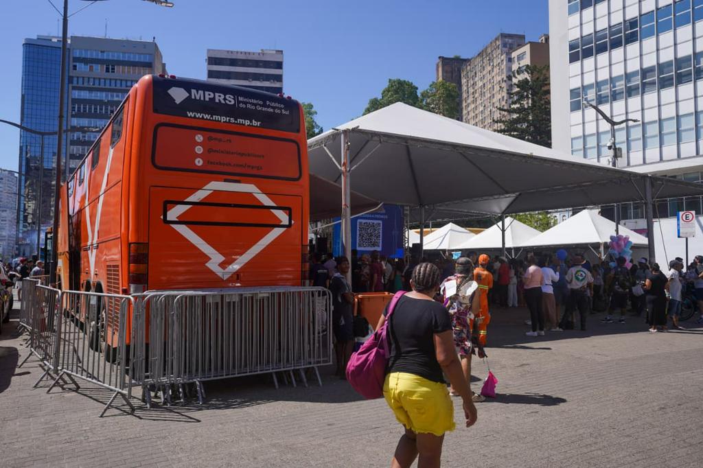 Durante o dia, o ônibus do MPRS esteve estacionado no Largo Glênio Peres, equipado com estrutura para atendimento ao público. No local, promotores de Justiça e servidores prestaram orientações em diversas áreas de atuação da instituição, como direitos do consumidor, meio ambiente, criminal, combate à violência contra a mulher, direitos humanos, educação, infância e juventude e família.