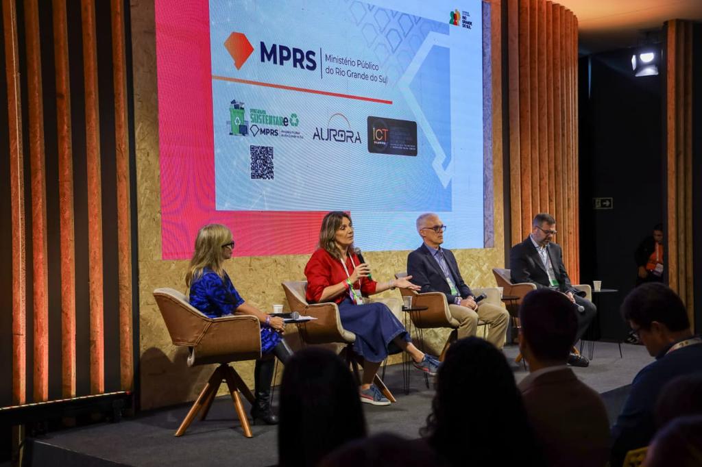 Participaram do painel o procurador-geral de Justiça, Alexandre Saltz, como mediador; o subprocurador-geral de Justiça de Gestão Estratégica, João Cláudio Pizzato Sidou; a procuradora de Justiça Ana Marchesan, coordenadora do Centro de Apoio Operacional de Defesa do Meio Ambiente; e a diretora do Instituto de Ciência e Tecnologia (ICT/MPRS), Leticia Batistela. Batistela também foi painelista no debate ”Hackeando o Sistema Regulatório: como inovar com segurança legal”, na quarta, 25, no POA Stage.