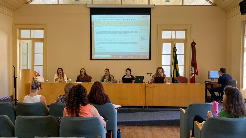 Participaram do encontro as promotoras de Justiça Maria Augusta Menz, Carla Cabral Lena Souto, Luciana Moraes Dias, Lessandra Bergamaschi e Angela Caren Dal Pos, além de representantes dos órgãos que compõem a rede de proteção da Microrregião 8.