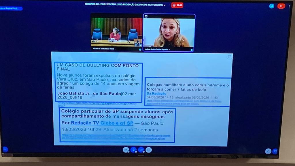 Cristiane Corrales ressaltou que o bullying é um tema urgente, que impacta diretamente jovens e crianças e citou a Pesquisa Nacional de Saúde Escolar (PENSE), que aponta que cerca de 4 em cada 10 adolescentes brasileiros já sofreram bullying, e mais de um quarto relata situações repetidas de humilhação. Os principais motivos das agressões estão relacionados à aparência física, além de fatores como cor ou raça, vestuário, sotaque, identidade de gênero ou orientação sexual, religião e deficiência. A promotora enfatizou que o enfrentamento do problema exige atuação integrada entre instituições e sociedade.