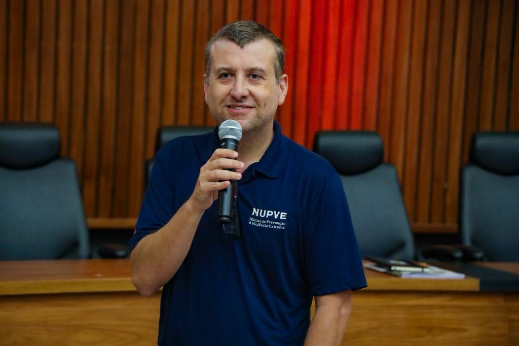A abertura da capacitação foi realizada pelo secretário-geral do MPRS, João Ricardo Santos Tavares, que destacou a importância do Projeto Sinais como ação estratégica de prevenção à violência extrema e de fortalecimento da atuação integrada entre o Ministério Público e as forças de segurança.