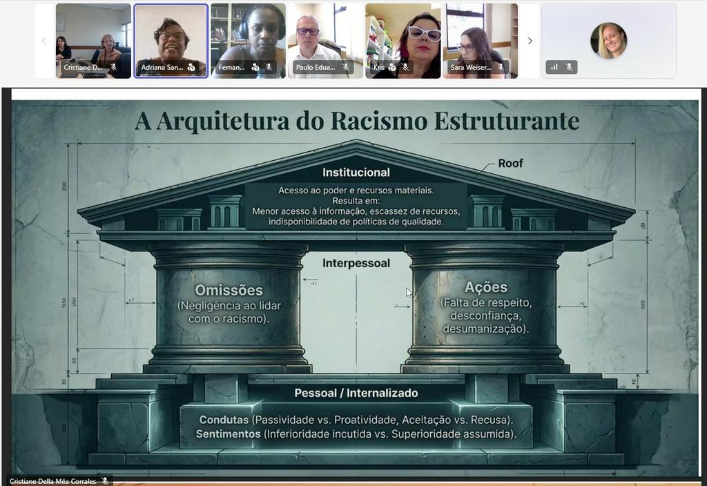 O Ministério Público do Rio Grande do Sul (MPRS) realizou, nesta quinta-feira, 9 de abril, uma reunião para tratar da Política Nacional de Equidade, Educação para as Relações Étnico-Raciais e Educação Escolar Quilombola (PNEERQ) e de temas relacionados à alfabetização. O encontro foi conduzido pela promotora de Justiça coordenadora do Centro de Apoio Operacional da Educação, Infância e Juventude (CAOEIJ), Cristiane Corrales.