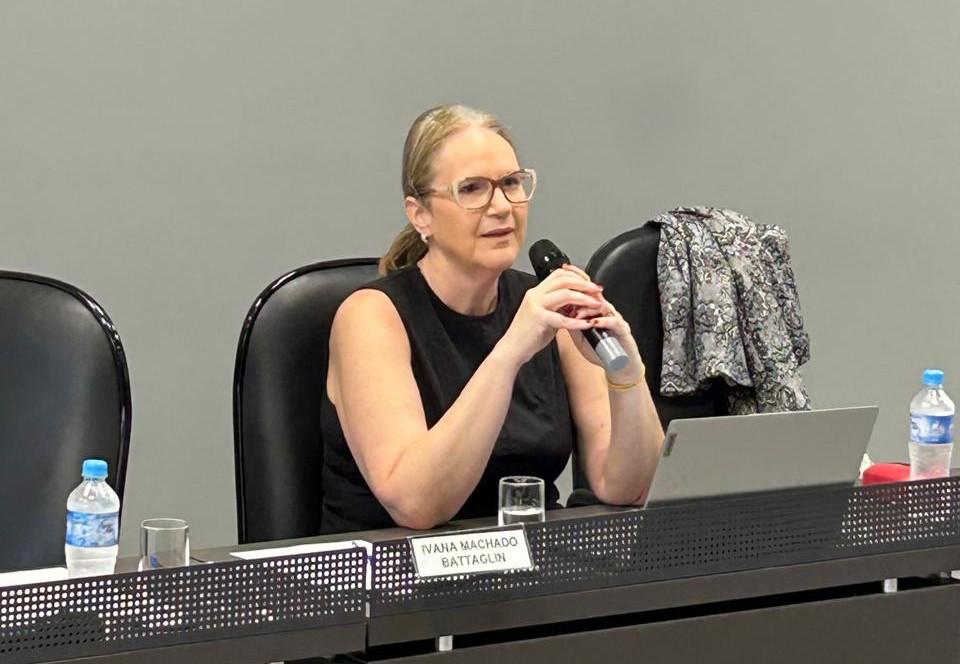 Durante a palestra, a promotora destacou a importância da incorporação da perspectiva de gênero na interpretação e aplicação do Direito das Famílias, ressaltando como desigualdades estruturais e papéis sociais historicamente construídos impactam a atuação do Sistema de Justiça e a efetivação dos direitos das mulheres.