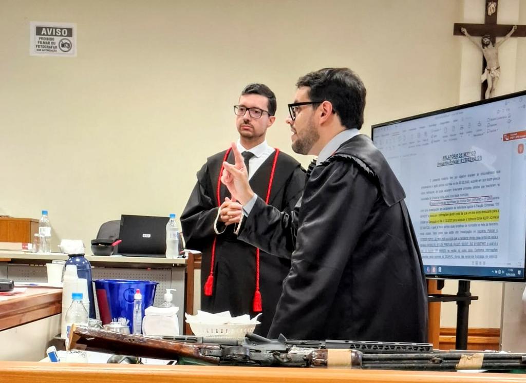 O MPRS sustentou que, durante os crimes, houve o uso de armas de fogo de uso restrito e a atuação contra agentes da segurança pública no exercício da função, além de demonstrar que o grupo estava fortemente armado e reunido em uma propriedade rural com o objetivo de executar um desafeto ligado ao tráfico de drogas. Ao serem abordados e identificados por equipes da Polícia Civil, os réus passaram a efetuar disparos contra os policiais, caracterizando as tentativas de homicídio qualificado. Os crimes ocorreram em 22 de fevereiro de 2022.