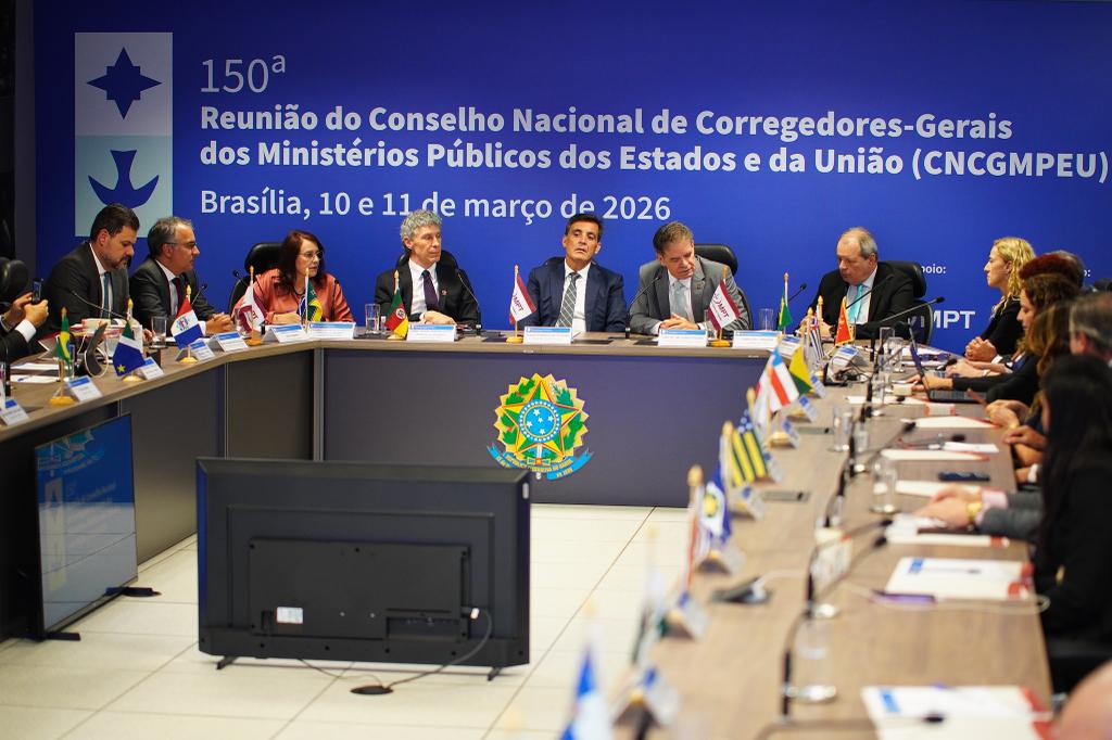 Nesta terça-feira, 10 de março, teve início a 150ª Reunião Ordinária do Conselho Nacional dos Corregedores-Gerais do Ministério Público dos Estados e da União (CNCGMPEU), presidido pelo procurador de Justiça Fábio Roque Sbardellotto, corregedor-geral do Ministério Público do Rio Grande do Sul (MPRS. O evento acontece até esta quarta-feira, na sede da Procuradoria-Geral do Trabalho (PGT), em Brasília, e reúne corregedores-gerais do MP em todo o país. Na abertura da reunião, Sbardellotto, d...