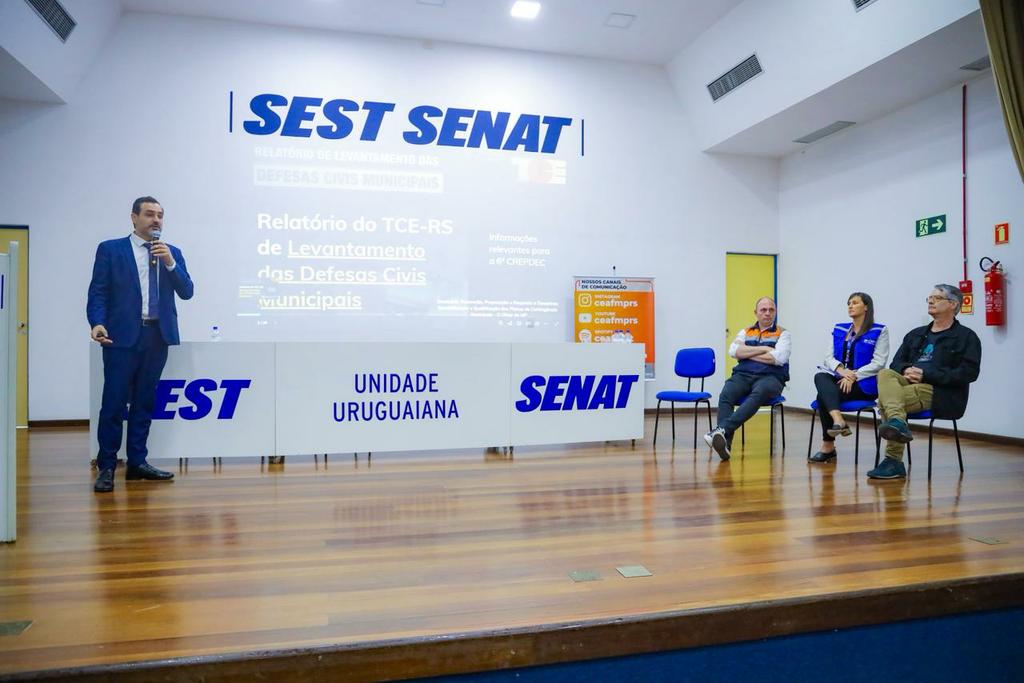 Uruguaiana recebeu, nesta terça-feira, 14 de outubro, o Seminário “Prevenção, Preparação e Resposta a Desastres: Sensibilização e Qualificação dos Planos de Contingência Municipais – O Olhar do MP”, promovido pelo Gabinete de Estudos Climáticos (GabClima) do Ministério Público do Rio Grande do Sul (MPRS). O encontro ocorreu no SEST SENAT e reuniu especialistas para discutir estratégias de enfrentamento aos eventos climáticos extremos.