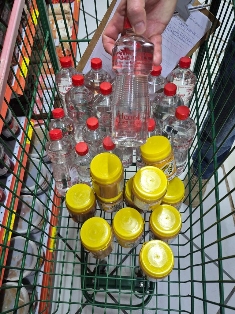 Entre os itens recolhidos estavam carnes sem procedência, produtos coloniais como mel, salame e aipim, além de diversas unidades de álcool, cuja comercialização é proibida em supermercados. Também foram encontradas uma grande quantidade de fraldas descartáveis vencidas, algumas com validade expirada desde novembro de 2022, e carne congelada vencida também em 2022.