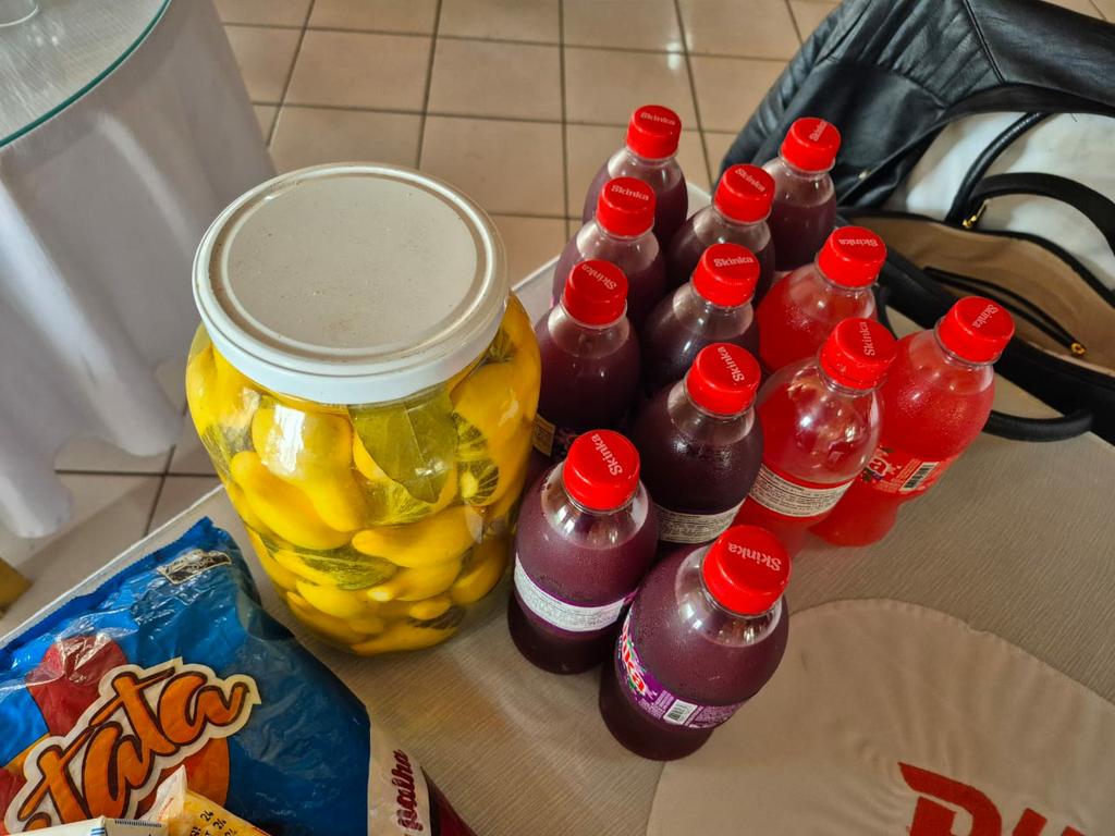 Entre os produtos apreendidos estão carne, queijo e mel colonial, massas caseiras, salgados, conservas, molhos, embutidos, iogurtes, além de unidades de álcool de comercialização proibida em supermercados.