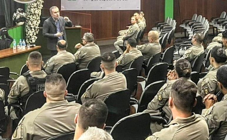 O Ministério Público do Rio Grande do Sul (MPRS), realizou, no dia 17 de outubro de 2025, em Sapucaia do Sul, mais uma capacitação e implementação do Projeto Fundadas Razões. O promotor de Justiça Charles Emil Martins, da 1ª Promotoria Criminal local, fez a apresentação durante formatura da Brigada Militar com o tema “Da suspeita até a prova: a importância do preparo policial para a realização da justiça”.