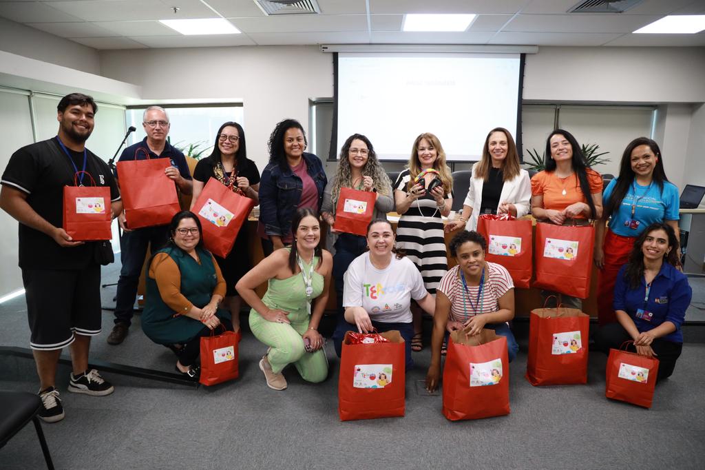 Após as entregas, representantes das instituições participaram de uma apresentação do Amigo Imaginário, assistente virtual desenvolvido pela WideLabs, em parceria com a ELO Grupo de Apoio à Adoção e o MPRS, que utiliza inteligência artificial para facilitar processos de acolhimento e de adoção.