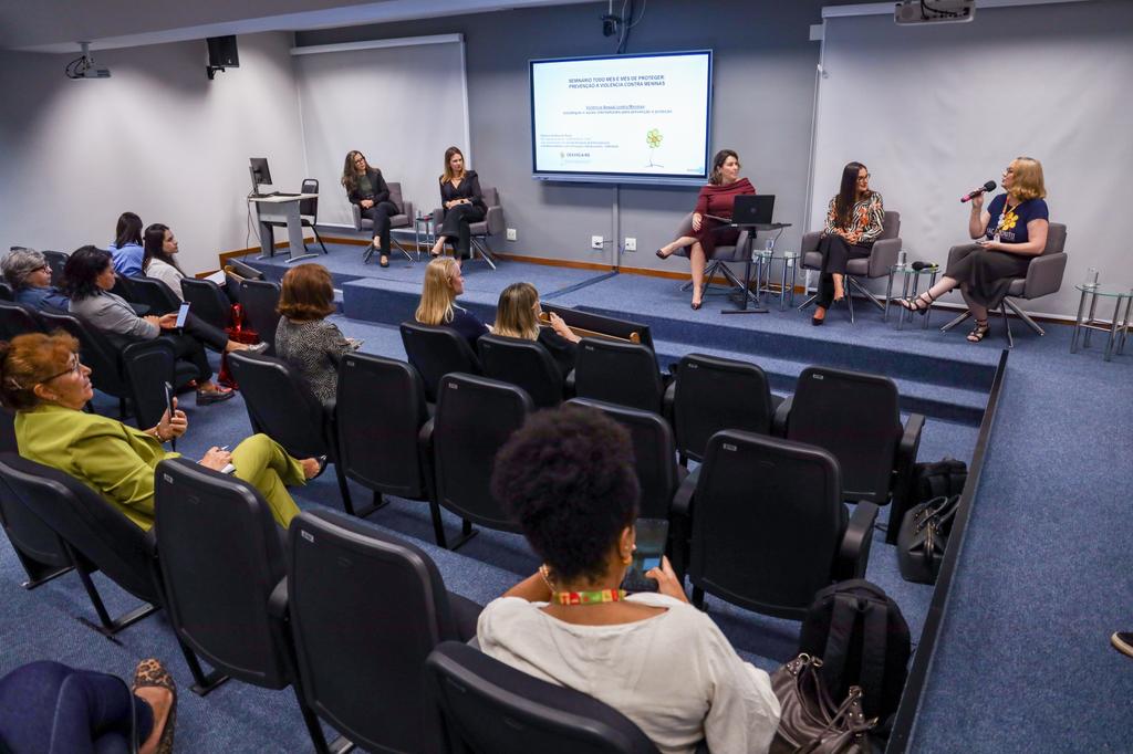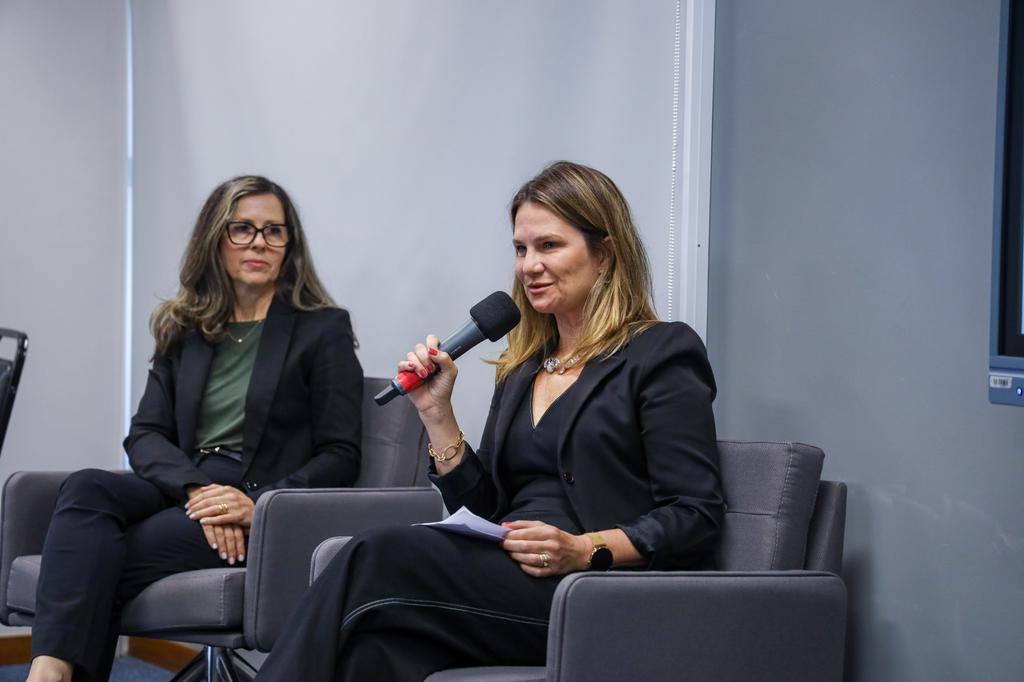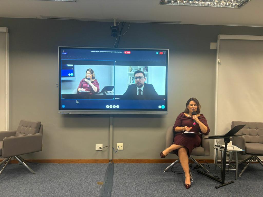A promotora criminal Vanessa Bom Schmidt Cardoso também atuou como facilitadora do painel, ao lado de representantes da rede estadual de atendimento e proteção.